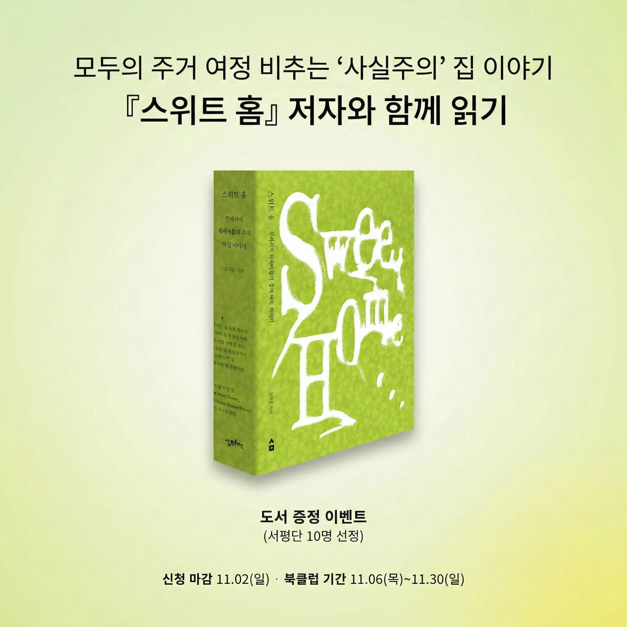 『스위트 홈』 북토크가 창경궁길 서점 수북강녕에서 11월 28일 열립니다