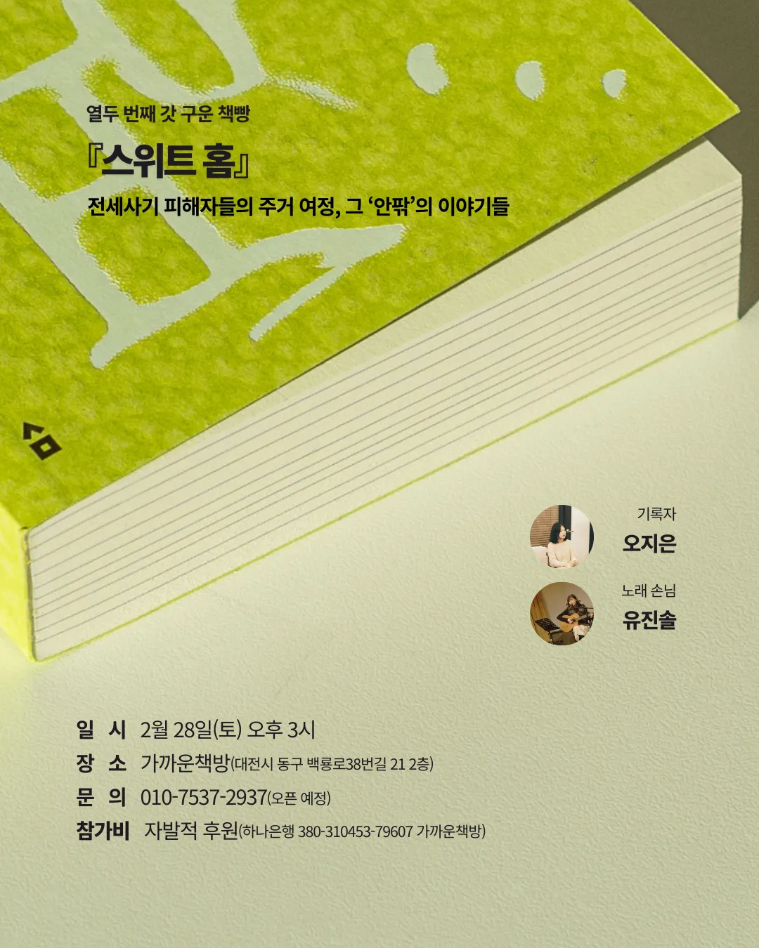 『스위트 홈』두 번째 북토크가 대전 자양동에서 2월 28일 열립니다